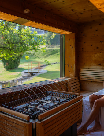 Im Saunabereich versprechen eine finnische Sauna (90 °C), eine Zirbensauna (70 °C) und eine Dampfgrotte wohlige Wärme nach einem aktiven Tag auf der Skipiste oder im Wandergebiet.